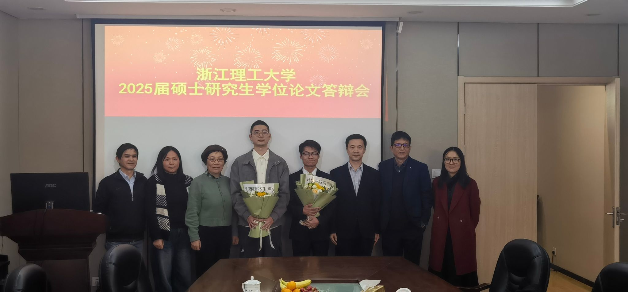 2025年11月19日下午,课题组韦珺皓、张杰两位同学参加了在化学系会议室举行的2025届硕士毕业论文答辩。答辩委员会主席由中国计量大学沈杭燕教授担任,传化智联股份有限公司宋金星正高级工程师和浙江理工大学熊玉兵教授担任答辩委员会委员,张翠云老师担任答辩秘书。韦珺皓、张杰两位同学在各自的科研领域取得了创新性的进展,体系完整;在答辩过程中表现出色,汇报过程逻辑清晰,回答老师专家们的问题正确,得到了答辩委员会的一致好评,顺利通过硕士学位论文答辩!祝贺韦珺皓、张杰两位同学!希望两位同学在未来的科研道路或工作岗位上,能够继续发扬课题组的优良学风,续写人生的辉煌!(二0二五年十一月)